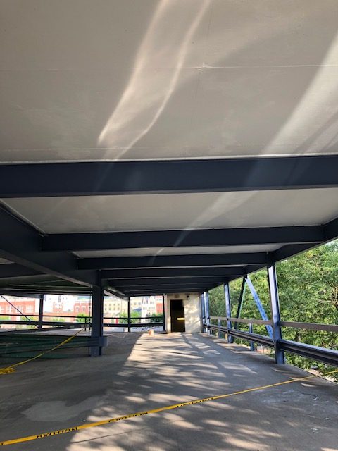 Some of the services we can provide for parking garages are: / structural steel painting / concrete painting / pressure washing / masonry repairs / steel repairs / caulking / vapor blasting / sand blasting / traffic markings / line striping / waterproofing / clear sealers / non-slip painting & coatings / stair tower painting / lobby painting / light pole painting / railing painting / stair painting / sign painting / sprinkler and pipe painting / and more.