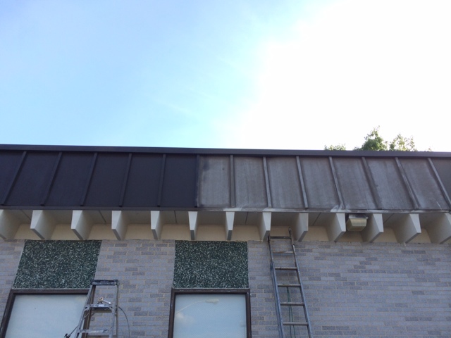 On this project we pressure washed the complete exterior of bank to remove dirt and oxidation from all aluminum surfaces.