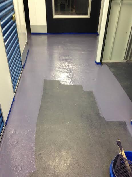 Above is a storage facility floor painting project that Retail Store Painting LLC. completed for American Self Storage. These floors take a great amount of abuse from storage unit tenants. There is furniture, boxes, crates, and metal carts constantly being moved across these floors. We used a grinder to remove the existing coats of paint from the floors completely. Then when the floor was thoroughly cleaned we applied a coat of Armor Seal 1000 high solids epoxy. This coating is very good for high traffic floors that take high abuse. This coating should hold up for at least 3 years before needing to be coated again. Retail Store Painting LLC. offers many different types of floor coatings.