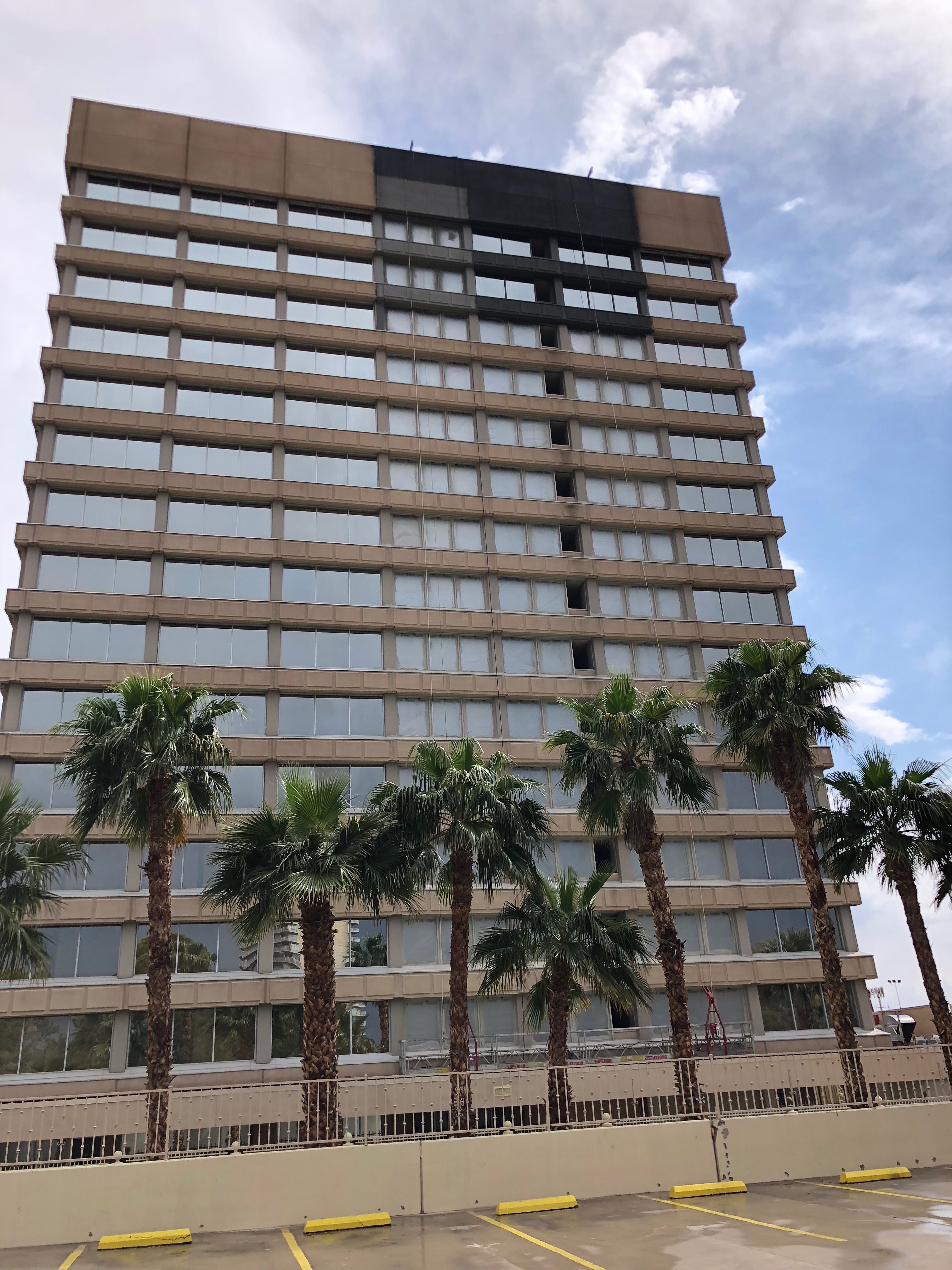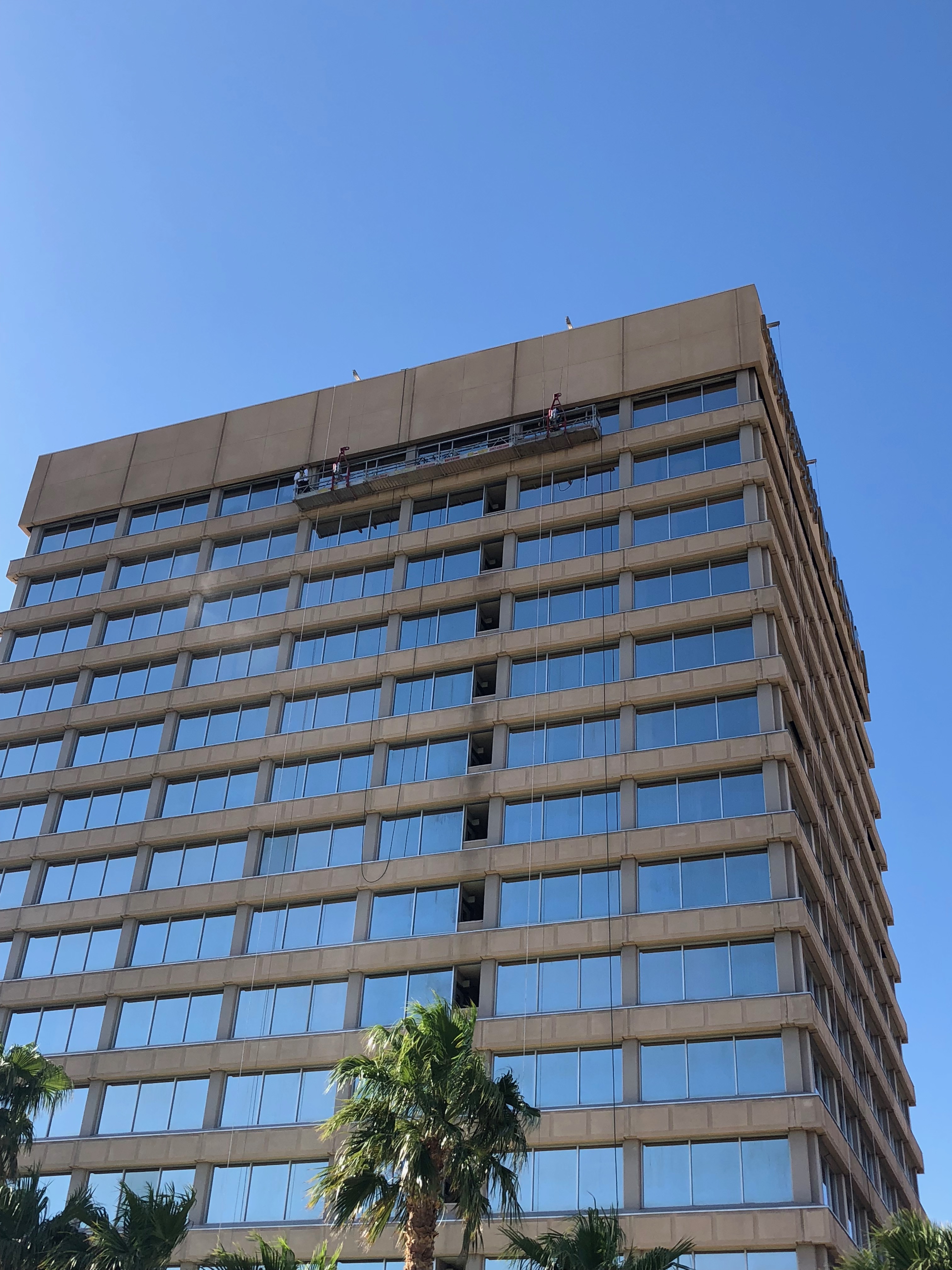 High Rise Painting – RSP completed this high rise painting project in Las Vegas NV. We pressure washed the entire building, did masonry repairs, vinyl repairs, and metal repairs. All windows were masked off to protect from paint overspray. We then Applied one coat of DTM bonding primer to all window frames, one coat of DTM to all window frames, and two coats of Loxon XP to all masonry surfaces. We also painted entire pool area columns, fencing, and misc. areas of parking garage. This project was done in two months time from start to finish. RSP specializes in high rise building painting across the entire country. We use all in house properly trained and certified employees, and we own all of our own swing stage and specialty equipment.
