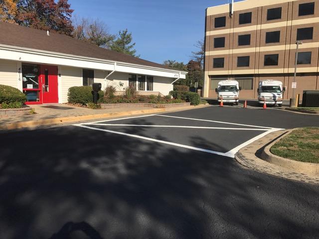 RSP completed 18 locations for Kindercare in Washington D.C. / Alexandria VA. / Virginia Beach VA. / Chesapeake VA. / Baltimore MD. / and many more. On these locations we cleaned the parking lots, and applied 2 coats of seal coating, When completely dry we returned and line striped the parking spaces, handicap areas, no parking, arrows, and misc hash marks. RSP has striped parking lots all over the country and has all the equipment and experience to complete any size parking lots, parking garages, etc.