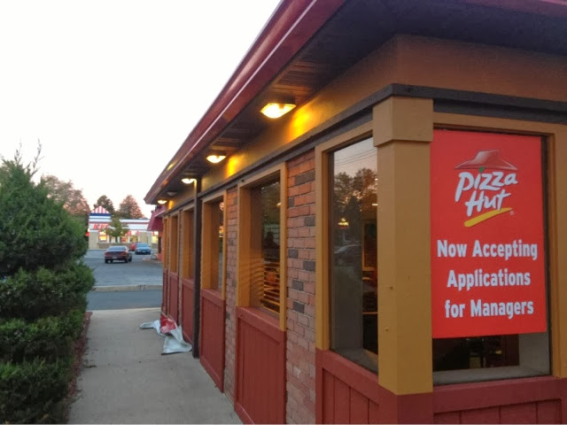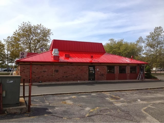 This re-branding project was of a Pizza Hut located in New York. As always we thoroughly pressure washed the entire building. Properly prepped and primed any and all areas of concern. Then we painted the roof with a 2-part urethane and painted a new color scheme on all the exterior wood trim, soffits, windows, doors, and wainscoting.