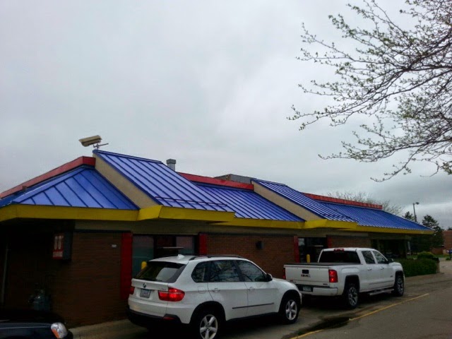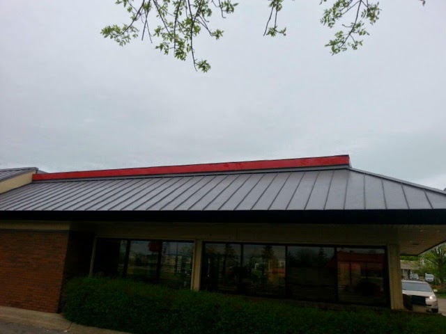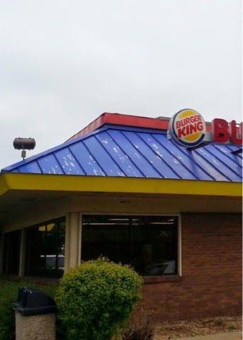 Retail Store Painting completed another Burger King exterior painting project in Kentucky. We pressure washed entire peeling metal roof to remove all dirt, and loose paint. We Hand scraped to remove any existing loose paint that pressure washing did not remove. We then applied DTM bonding primer to all bare metal. We then top coated metal roofing, and facia with 2 coats of DTM acrylic paint ( enviro tint was used to reduce fading ) This roof was a complete color change. It came out perfect, and the owner was extremely happy.
