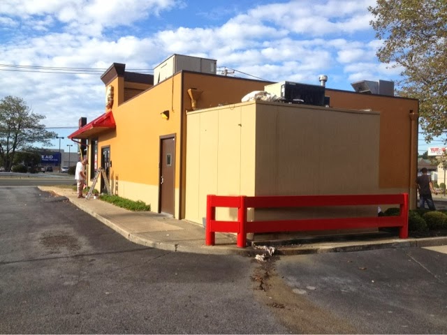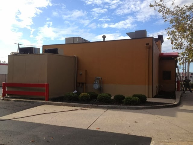 This project consisted of a entire exterior Pizza Hut re-paint. The structure was thoroughly pressure washed, any and all cracks and problem areas were properly addressed, The final step was 2 coats of 100% acrylic paint was applied to all EIFS areas, doors were painted with 2 coats of DTM, and red roof was sprayed with a PPG 2 part urethane.