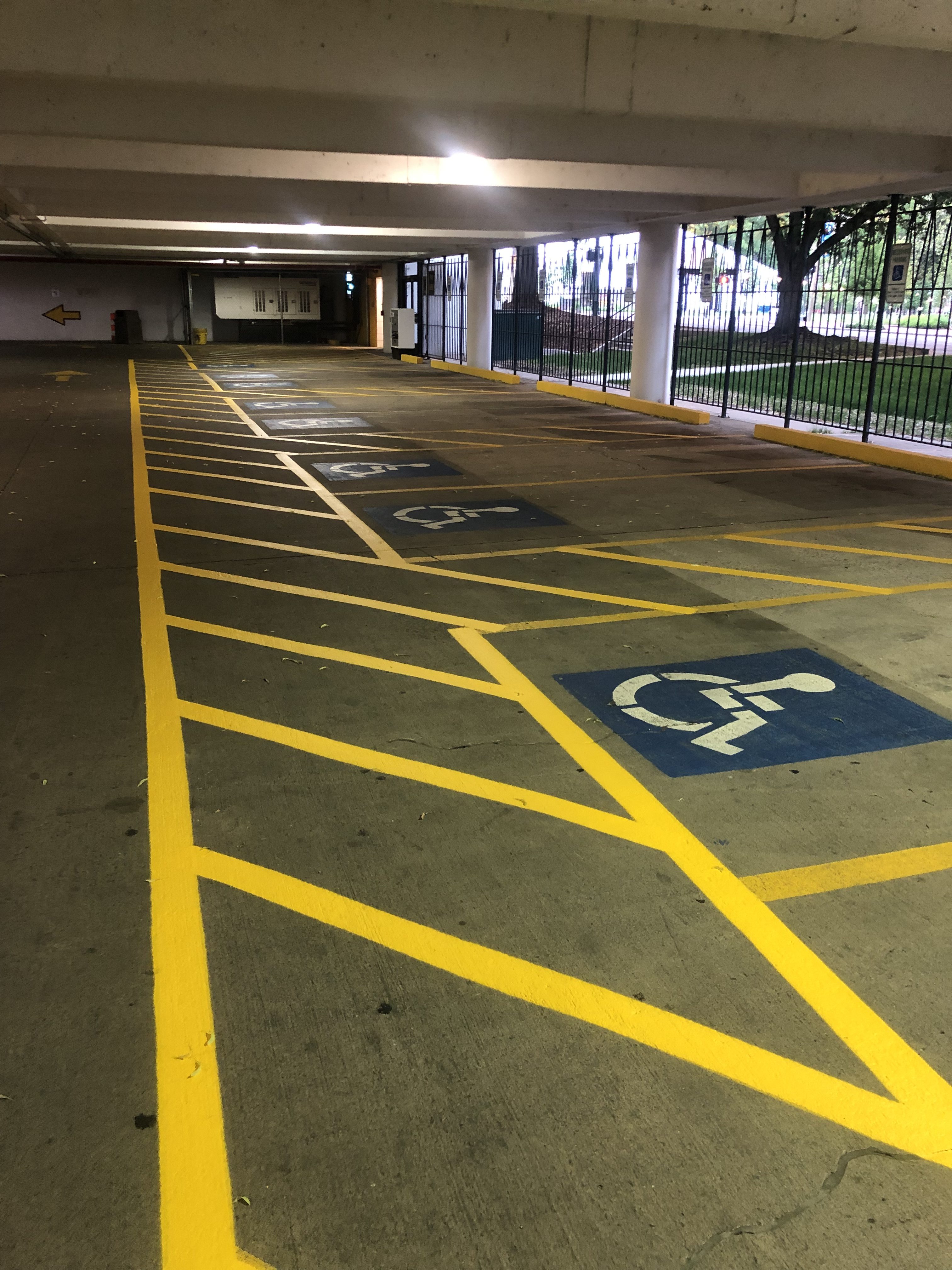 Stencil painting of arrows, handicap symbols, wording